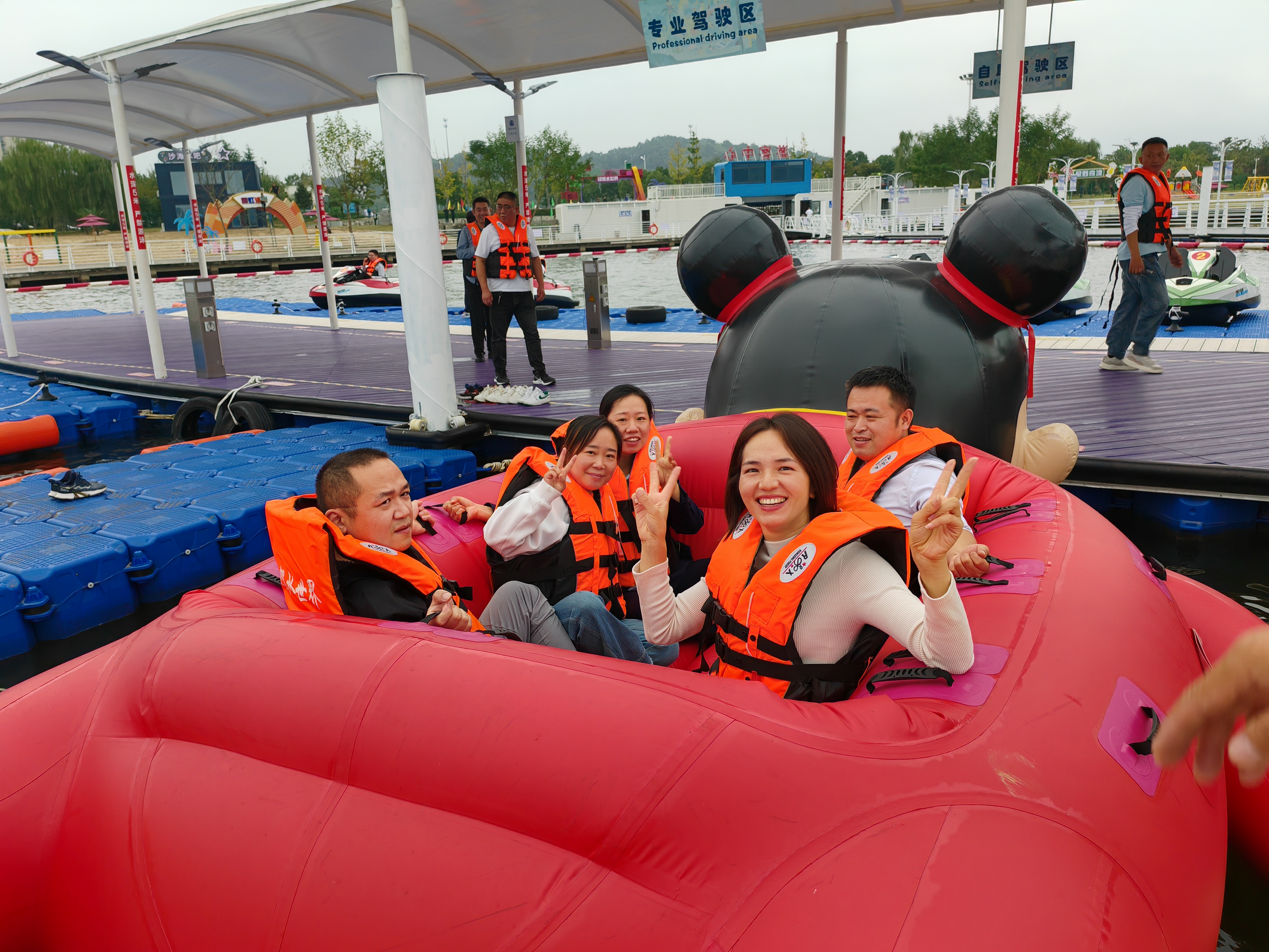在公司团建环节现场,霍斛科技公司工会主席张平同志表示,工会将继续发挥桥梁纽带作用,积极组织各类活动,营造温馨和谐的氛围。他希望大家在迎驾水世界,体验各种趣玩项目,享受轻松愉快的休闲互动时光,在水世界中尽情释放压力,挑战自我。并且希望通过此次团建活动,展现霍斛科技团队朝气蓬勃、团结向上的精神风貌,以健康活力的方式为祖国庆生。