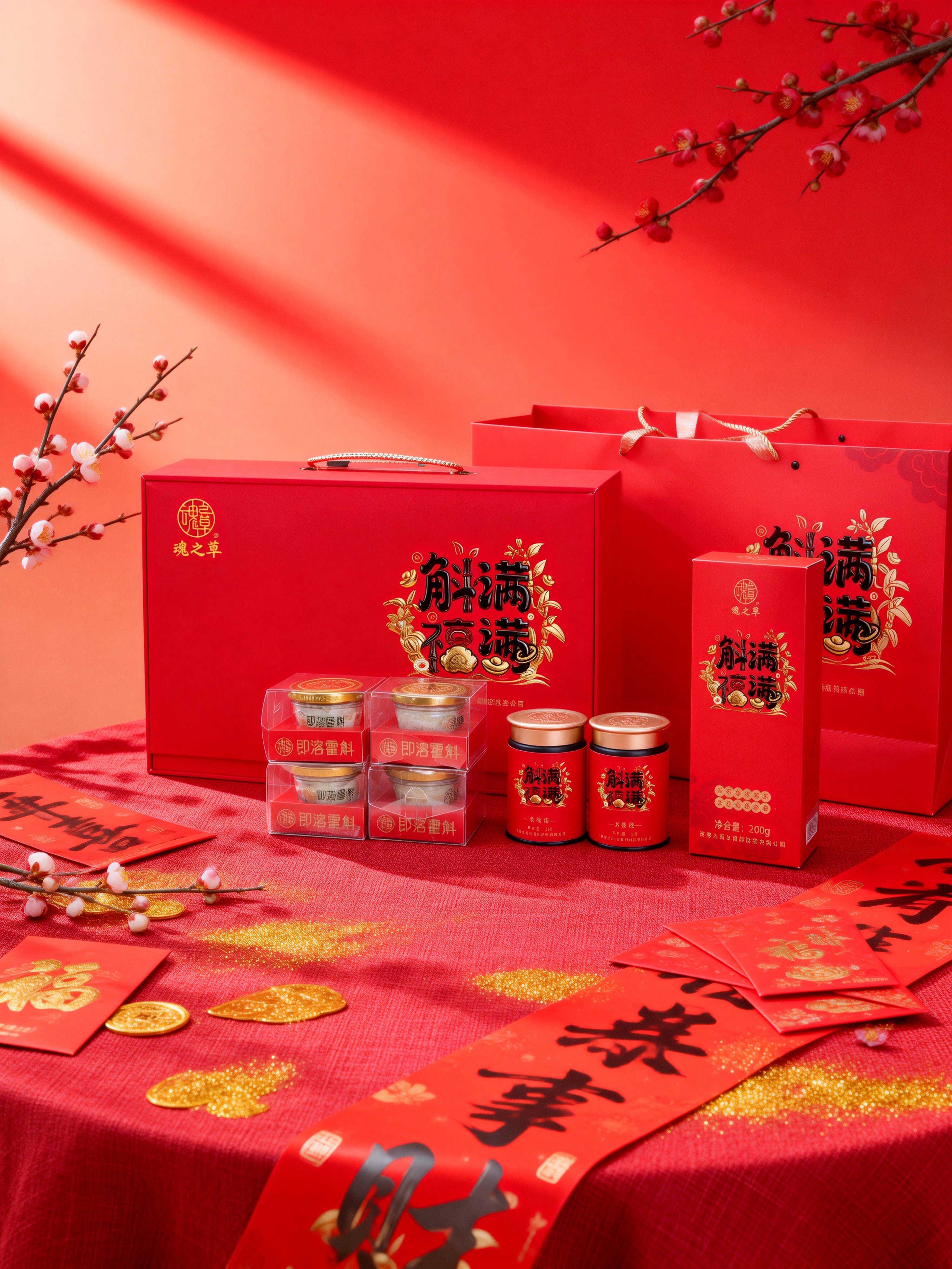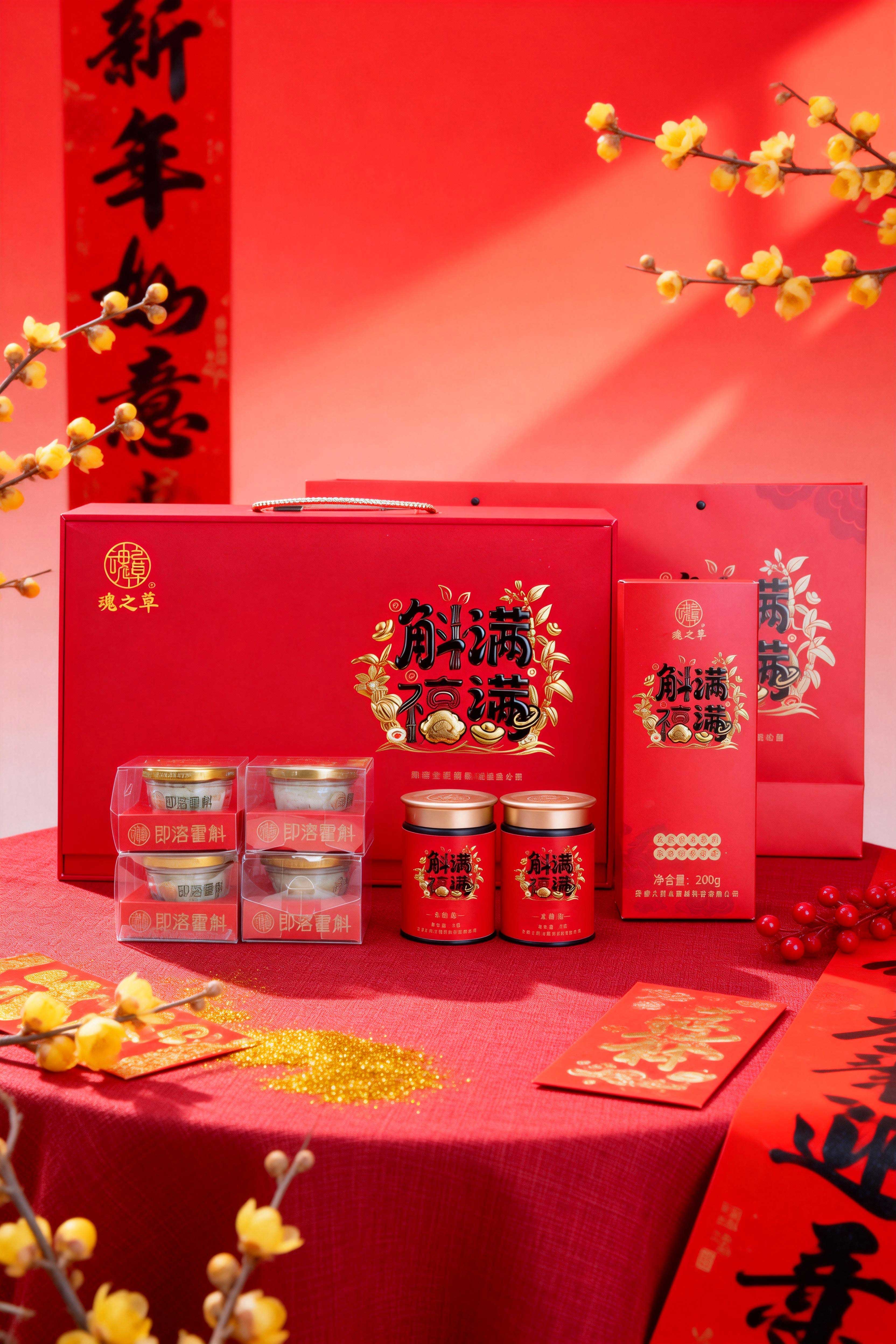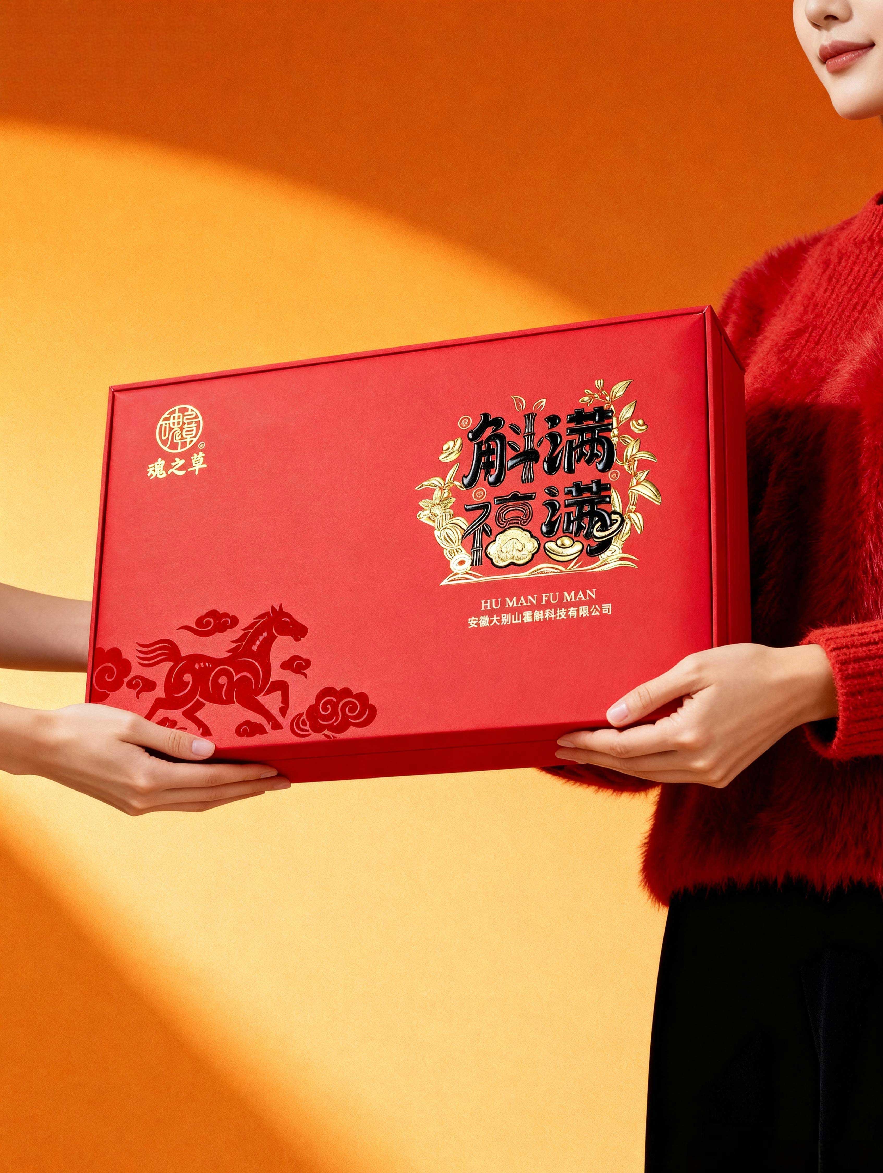 “斛满福满”礼盒以中国红为底,